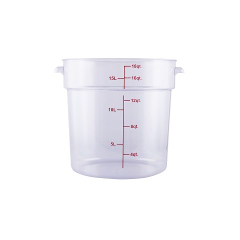 Food Storage Container, 18 qt., round, stackable, dishwasher and freezer safe, temperature resistant from -40°F/-40°C to 210°F/99°C, polycarbonate, clear, , NSF (QTY break = 6 each)
