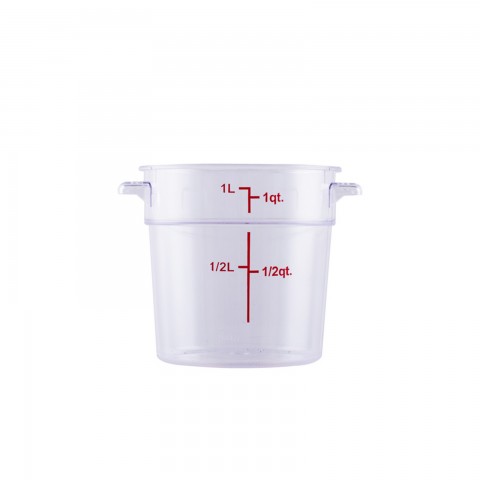 Food Storage Container, 1 qt., round, stackable, dishwasher and freezer safe, temperature resistant from -40°F/-40°C to 210°F/99°C, polycarbonate, clear, , NSF (QTY break = 12 each)