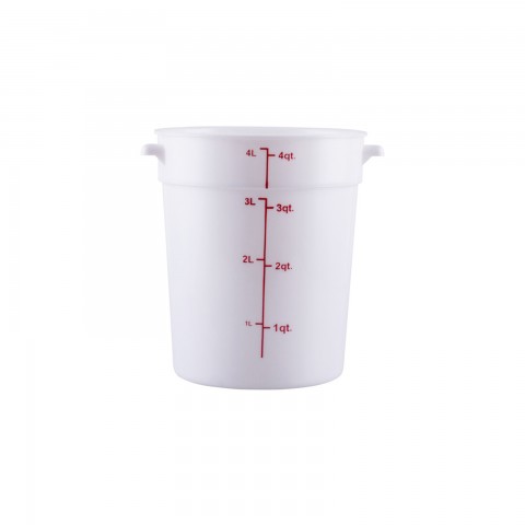 Food Storage Container, 4 qt., round, stackable, dishwasher and freezer safe, temperature resistant from -40°F/-40°C to 160°F/71°C, polypropylene, white, BPA free, NSF (QTY break = 12 each)
