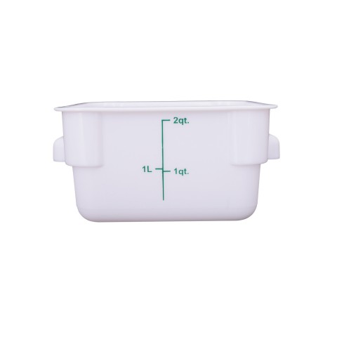 Food Storage Container, 2 qt., square, stackable, dishwasher and freezer safe, temperature resistant from -40°F/-40°C to 160°F/71°C, polypropylene, white, BPA free, NSF (QTY break = 12 each)