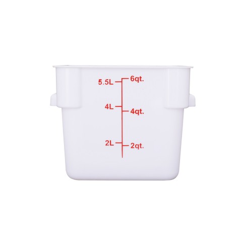 Food Storage Container, 6 qt., square, stackable, dishwasher and freezer safe, temperature resistant from -40°F/-40°C to 160°F/71°C, polypropylene, white, BPA free, NSF (QTY break = 12 each)