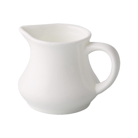 Grand Canyon Creamer, 4 oz., 2-3/4" dia. x 2-1/2"H, round, with handle, glazed foot, fully vitrified, dishwasher, oven and microwave safe, porcelain, Bone White (Sold by case)
