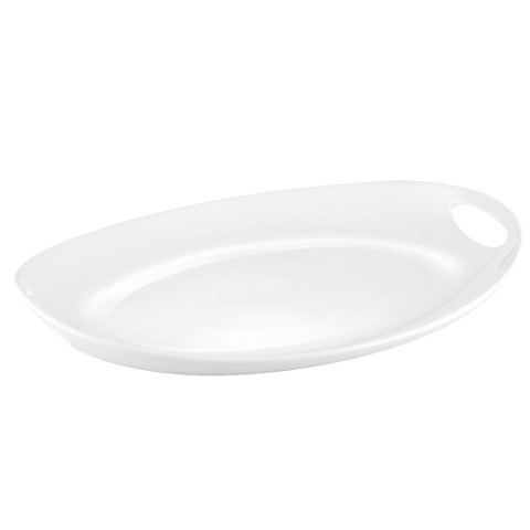 Catering Collection Tray, 18-1/8"L x 12-7/8"W x 2-1/4"H, oval, deep, with 2 handles, dishwasher, oven and microwave safe, porcelain, Super White (Sold by case)