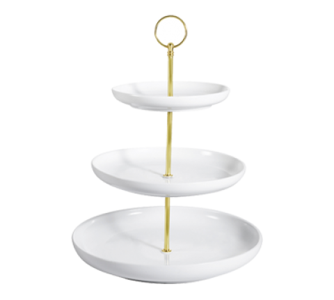 Catering Collection Serving Tray, 3-tier, includes: (1) 10" dia. base tier, (1) 8-1/2" dia. middle tier and (1) 6-1/2" dia. top tier, 13-3/4"H, round, coupe, dishwasher, oven and microwave safe, porcelain, Super White (Sold by case)