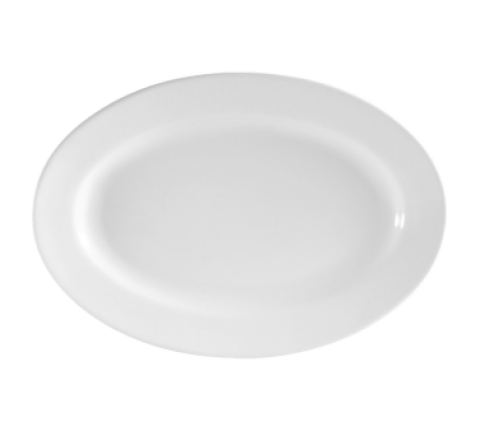 Clinton Platter, 20"L x 13-3/4"W x 2"H, oval, rolled edge, dishwasher, oven and microwave safe, porcelain, Super White (Sold by case)
