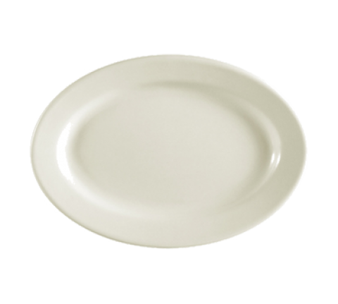 REC Platter, 11-1/2"L x 8-1/4"W x 1-1/4"H, oval, rolled edge, dishwasher, oven and microwave safe, stoneware (ceramic), American White (Sold by case)