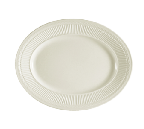Ridgemont Platter, 9-1/2"L x 7"W x 1-1/2"H, oval, embossed, dishwasher, oven and microwave safe, stoneware (ceramic), American White (Sold by case)