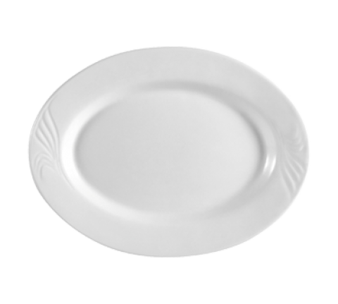 Roosevelt Platter, 14"L x 11"W, oval, embossed, dishwasher, oven and microwave safe, porcelain, Super White (Sold by case)