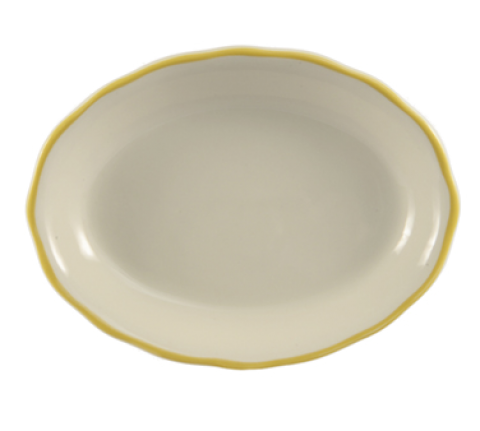 Seville Platter, 7-1/2"L x 5-3/4"W x 7/8"H, oval, scallop edge, dishwasher and oven safe, stoneware (ceramic), gold/band American White (Sold by case)