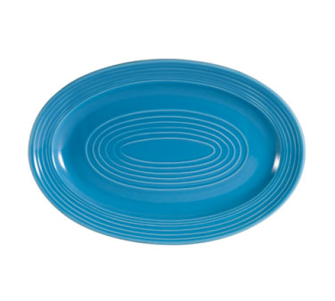 Tango Platter, 15-3/4"L x 11"W x 1-1/2"H, oval, embossed, dishwasher, oven and microwave safe, porcelain, Peacock (Sold by case)