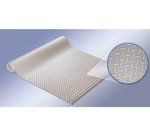 Diamond Plate Runner, 4' W, 5/32" thick, vinyl, embossed deckplate pattern, resistant to normal oils & industrial cleaners, slip resistant, protects floors (priced per linear foot)