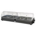 Heavy Duty Jumbo Buffet Server, countertop, (2) 19" x 11" warming zones, holds (4) half size steam table pans (included), (2) clear Eastman Tritan™ copolyester rolltop lids with metal hinges, (2) variable heat controls, 155°-205°F temperature range, safety signal light, cool-touch handles, includes (2) removable stainless pan holders, stainless steel construction, charcoal finish, non-skid feet, 120v/60/1-ph, 5.0 amps, 600 watts, NEMA 5-15P, UL, cUL, Made in USA (ships in two cartons)