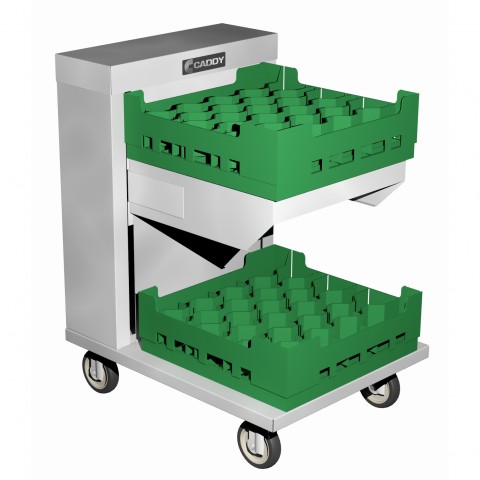 Caddy Magic Cup/Glass Rack Dispenser, cantilever, unheated, for 20" x 20" racks, capacity up to (140) cups or (144) bowls or (190) glasses, self-leveling platform, stainless steel construction, 4" swivel casters, NSF