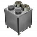 Caddy Magic Underliner/Base Dispenser, cabinet style, "hi-heat", (4) self-leveling adjustable dispensing cylinders, for up to 9-1/4" dia., stainless steel top, plastic corner bumpers, individual auto. dial control for each cylinder, 5" swivel casters (2 with brakes), 208/60/1-ph, 17.3 amps, 3800 watts, cord with NEMA 6-30P, ETLus, NSF