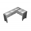 Hot Food Caddy, electric, slimline, open base, (5) 12" x 20" x 6-3/8" deep hot food wells, L-shaped, right-handed, insulated wells with individual heat controls, stainless steel construction, vertical corner bumpers, 4" swivel casters (2 with brakes), ETLus, NSF