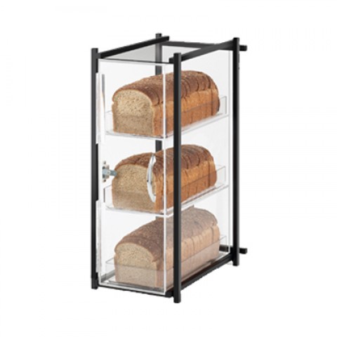 Bread Case, 9-1/2"W x 14-1/4"D x 19-3/4"H, 3-tier, (3) acrylic trays, acrylic paneled walls, metal frame, black