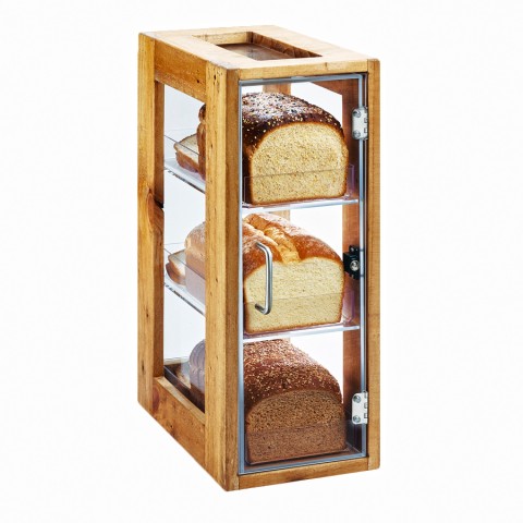 Madera Bread Box, 8"W x 13"D x 20-1/2"H, 3-tier, stackable, hinged door with silver handle, (3) polycarbonate drawers, use vertically or horizontally, acrylic body, clear, rustic pine frame