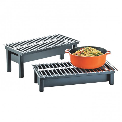 Modern Chafer Alternative, 22"W x 12"D x 4"H, square, stainless steel wire grill, fuel cell rail, windguard, black, BPA Free