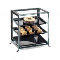 SoHo Display Case, 17-1/4"W x 12-3/4"D x 20-3/4"H, 3-tier, dual serve, double doors with knobs, (3) black acrylic 10" x 14" trays, (3) tray positions: tilted front, tilted back, & level, acrylic case, black frame