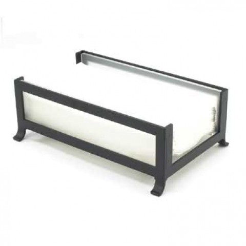 SoHo Napkin Holder, 9-1/2"W x 6-1/4"D x 3-1/2"H, accommodates 4" x 8" napkins, frosted faux glass panels, black frame, curved feet, BPA Free