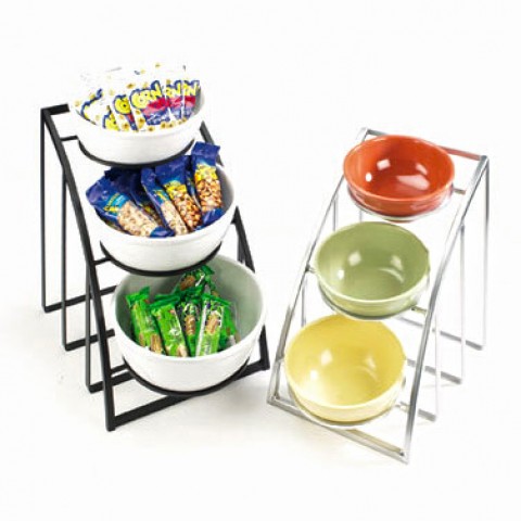 Mission Style Bowl Display Frame Only, 12"W x 19"D x 17-1/2"H, 3-tier, accommodates (3) 10" dia. bowls, 7" ID ring, black frame, BPA free (bowls sold separately)