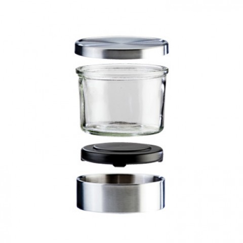Mixology Jar, 16 oz. capacity, 4-1/4" dia. x 4"H, double walled insulated base, stainless steel solid lid with silicone lining, glass, clear (cold pucks sold separately)