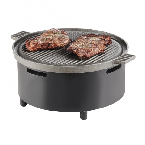 Chafer Alternative, 16-3/4" dia. x 7-1/2"H, round, includes wire grill and skillet, black