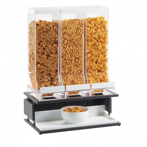 Monterey Cereal Dispenser, (3) 9.8L capacity bins, 17-1/4"W x 10-1/2"D x 23-1/2"H, countertop, pull & serve mechanism, crumb catcher, steel base, black, BPA Free