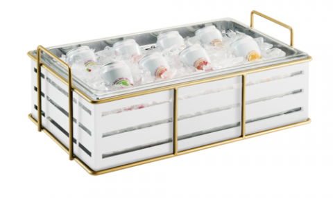 Ice Housing, 22"W x 13-1/2"D x 6-3/4"H, rectangular, includes clear polycarbonate pan, gold wire frame, white, Empire