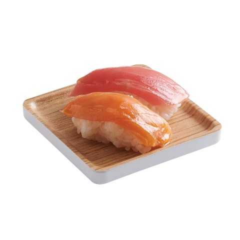 Serving Tray, 4"W x 4"D x 1/2"H, stackable, white melamine, natural wood