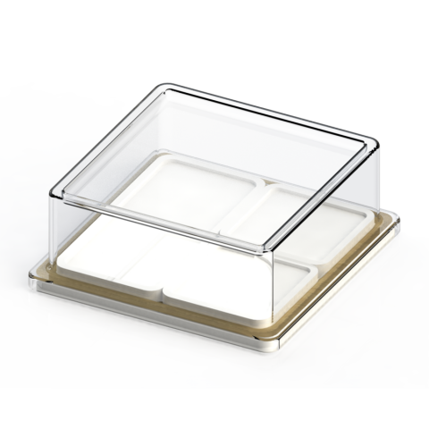 Cover, 9"W x 9"D x 3"H, stackable, notched, for 22099 Series, plastic, crystal clear