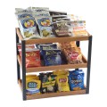 Madera Merchandiser, 12"W x 20"D x 18-3/4"H, 3-tier, black metal frame, rustic pine