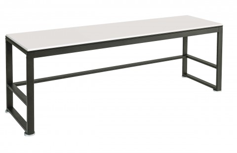 Merchandising Table, 64-1/2"W x 18"D x 24-1/4"H, 2-tier, nesting, white top shelf, metal frame (casters & bottom shelf sold separately)