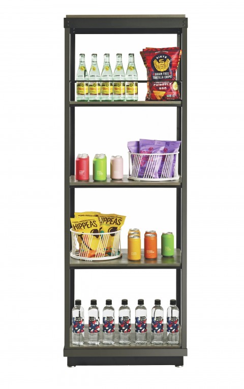 Madera Merchandising Cart, 5-tier, 24"W x 16"D x 72"H, rustic pine shelves, metal frame (casters & rails sold separately)