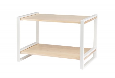 Blonde Display Riser, 22" x 13-1/4" x 25-1/2", 3-tier, white metal frame, maple wood