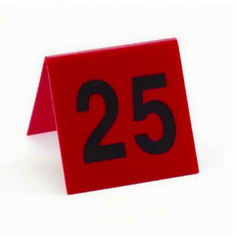 Number Tent, 3"W x 3"H, set of # 26 to # 50, red with black numbers, break resistant, plastic