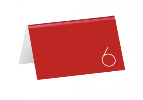 Engraved Number Tent, 5"W x 3-1/2"H, horizontal, red/white (see color chart. Specify number and color)