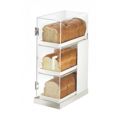 Luxe Bread Display Case, 7"W x 14"D x 20-1/4"H, 3-tier, countertop, dual hinged door with handle, (3) white trays, clear acrylic body, stainless steel accents
