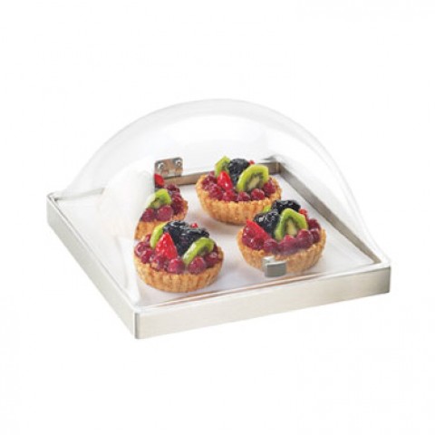 Cold Sampler Display, 12"W x 13"D x 7-1/2"H, square, acrylic flip lid, cold pack, liner, square base plate, stainless steel