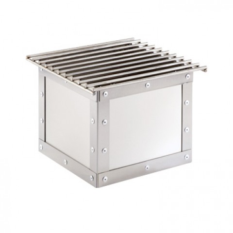 Urban Chafer Alternative, 12"W x 12"D x 8-1/4"H, square, wire grill, windguard, fuel holder, brushed stainless steel with accented rivets