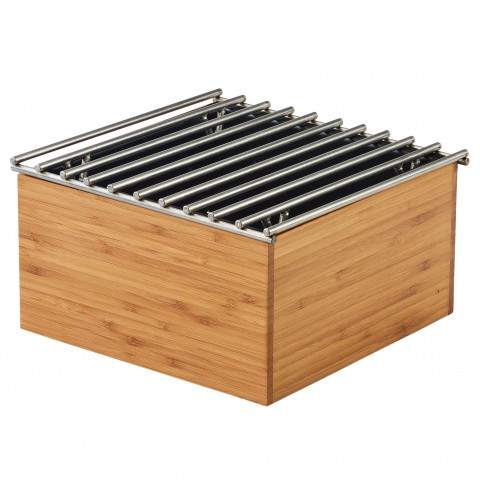 Chafer Alternative, 9-3/4"W x 9-3/4"D x 5-1/2"H, square, wire grill, use with canned heat, bamboo