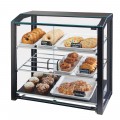 Grand Bakery Case, 29"W x 17"D x 29"H, 3-tier, large, self-service, (2) front doors with handles, (6) small melamine trays, (3) large melamine trays, (3) adjustable grated shelves, (3) adjustable black board shelves, clear acrylic body, black metal frame