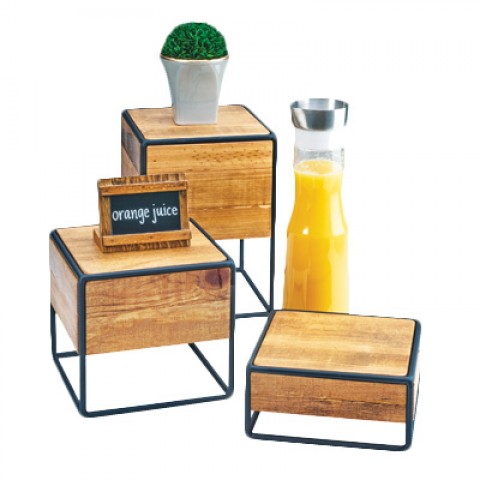 Madera Industrial Riser, 8"W x 8"D x 7-1/2"H, square, rustic pine panels, black metal frame