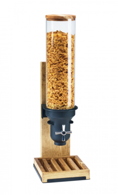 Madera Cereal Dispenser, (1) 4.5L capacity cylinders, 8"W x 9-1/2"D x 26-1/2"H, turn & serve mechanism, removable crumb catcher, plastic cylinders, rustic pine base