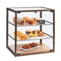 Sierra Bakery Display Case, 21"W x 17"D x 23-1/4"H, 3-tier, countertop, dual serve, non-refrigerated, (2) hinged front doors with knobs, (3) shelves, (3) 13" x 18" clear trays, metal frame, wood base