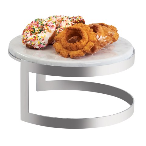 Ashwood Display Riser, 12" dia. x 6"H, round, removable faux marble melamine top, stainless steel base, chrome finish