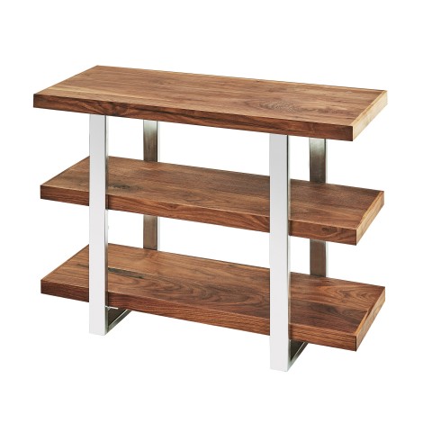 Mid-Century Frame Riser Shelves, 32"W x 13-1/2"D x 25-1/2"H, 3-tier, (3) walnut shelves, chrome frame
