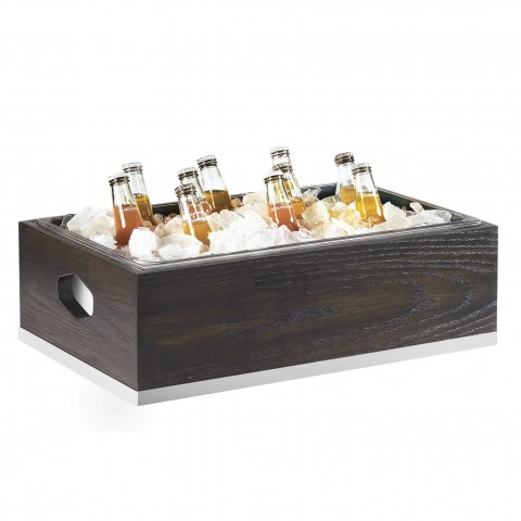 Cinderwood Ice Housing, 21-1/4"W x 13-1/4"D x 7"H, rectangular, includes: clear polycarbonate pan & condensation liner, geometric end cutouts, mirrored base & trim, oak wood, dark ash gray, BPA Free
