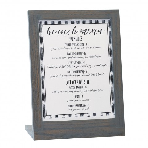 Ashwood Menu/Card Holder, 9"W x 4"D x 11"H OAL, accommodates 8-1/2"W x 11"H card size, oak wood, gray wash
