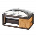 Sierra Chafer, 8 qt. capacity, 22"W x 15"D x 14"H, rectangular, hinged stainless steel lift-off lid with handle, chafer drawer, windguard, rustic pine, metal frame, bronze finish